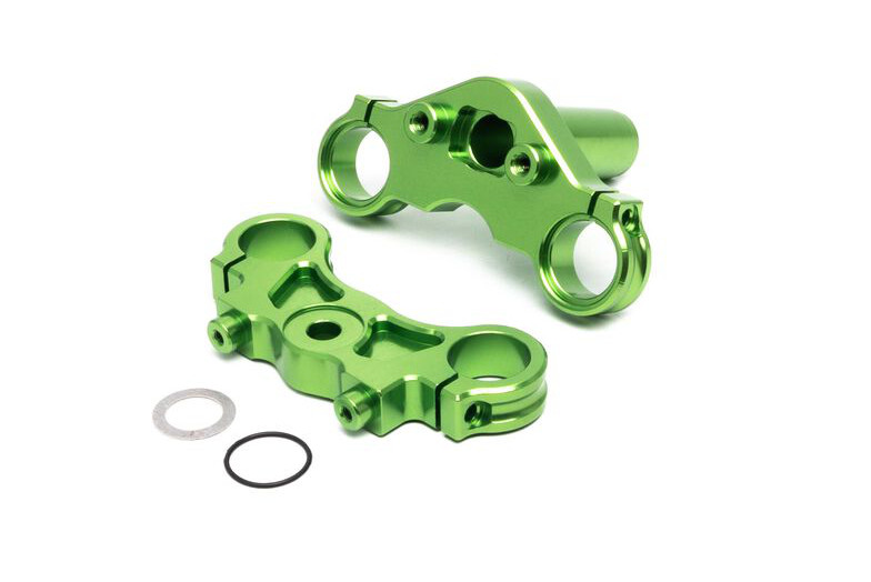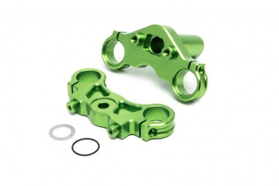 This is a Green Aluminium Triple Clamp Set from Team Losi, for their new 1/4 Promoto-MX Motorcycle.