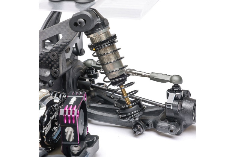 - Adjustable rear pivots for anti-squat and rear toe refinement