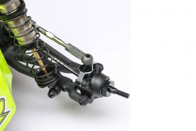 Two front caster block and spindle options let you tune the steering feel to what you want and need on different surfaces; options for wide or narrow king pin locations are available. The wide location provides a more linear feel and keeps the buggy flatter through the corners. For a more aggressive steering feel, you can choose the narrow king pin location.