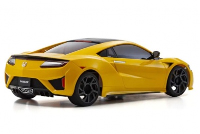 This is a Yellow Pearl Mini-Z Honda NSX Body, Wheels and tires from Kyosho on their MR-03W-MM Chassis.