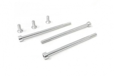 Includes (3) 7075 aluminium main motor assembly long screws and (3) 7075 aluminium timing screws.