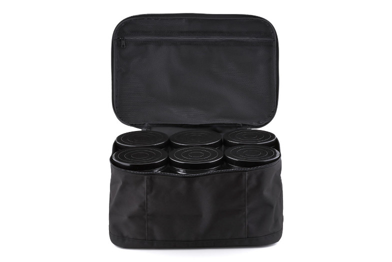 - Six airtight 20.5cm tall, 12cm diameter PET tubes with screw on lid
