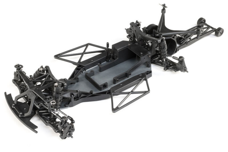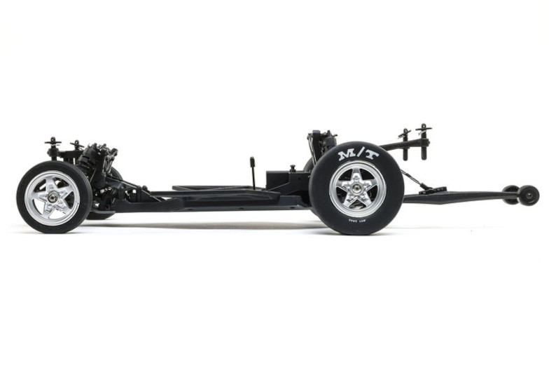 It has all the advantages of an aluminium chassis with plenty of 22s option parts, as well as being a pre-built roller. It's designed with racers in mind with Mickey Thompson branded large rear drag racing slicks and low drag, front tires.