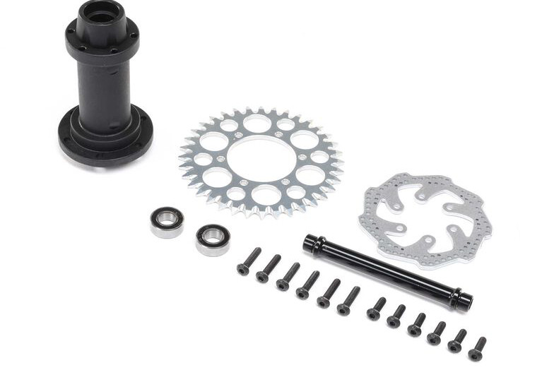 This is a Complete Rear Hub Assembly from Team Losi, for their new 1/4 Promoto-MX Motorcycle.