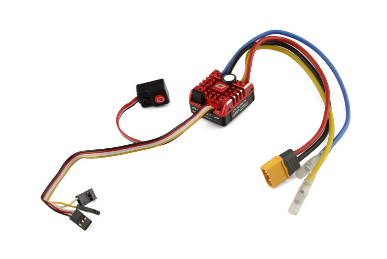 The reliable hardware combined with powerful software (features an array of programmable parameters like start force, drag brake rate, and etc.) creates an ideal power solution to 1/10th, 1/8th rock crawlers but is equally a reliable, powerful option for other 1/10 brushed motor applications.